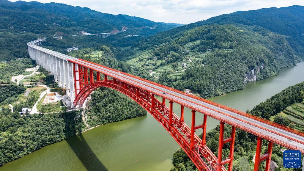 车辆行驶通过德余高速公路乌江特大桥(7月10日摄,无东谈主机相片)。