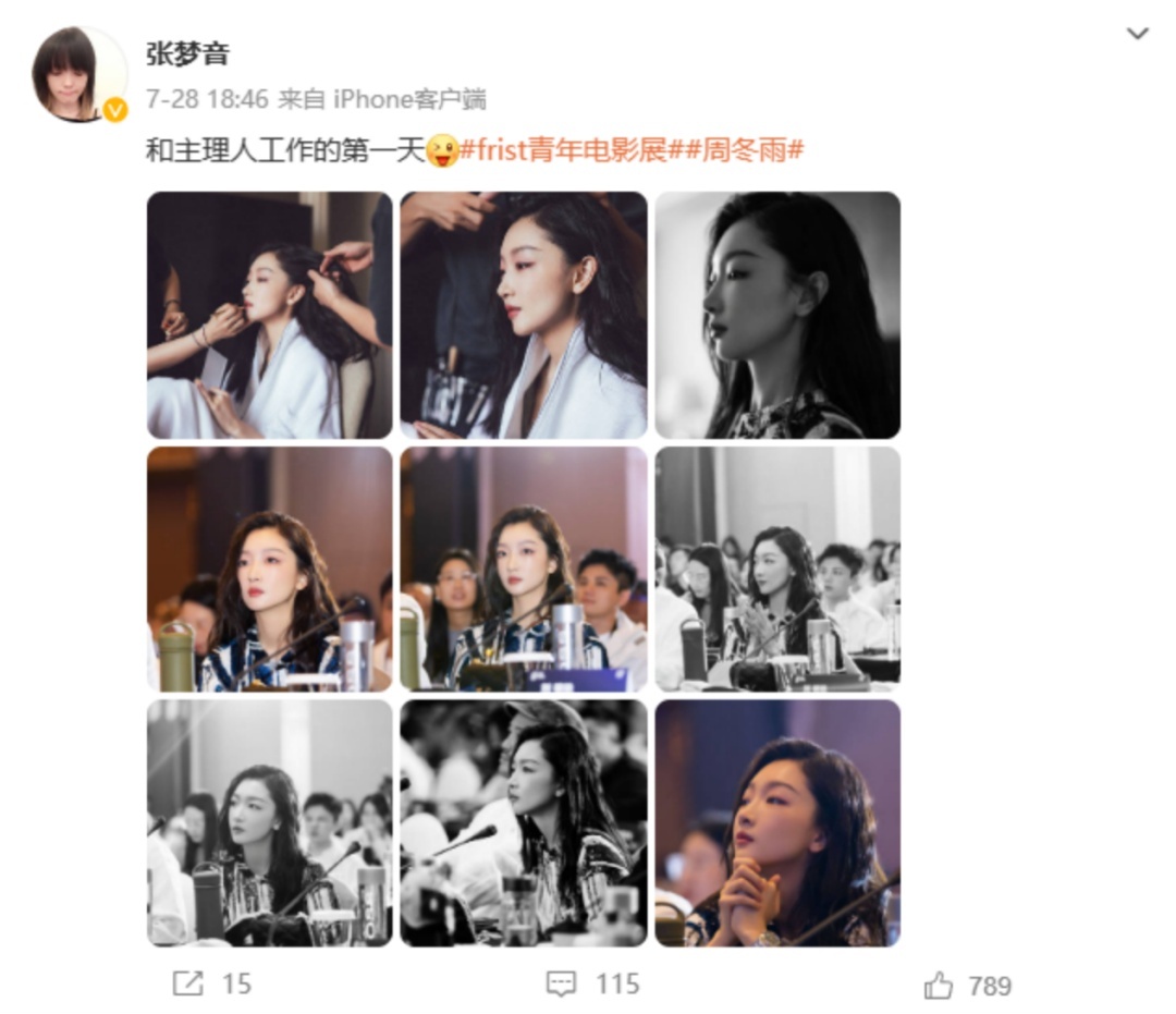 这条博文之后,张梦音的吩咐平台也惟一了周冬雨的身影。