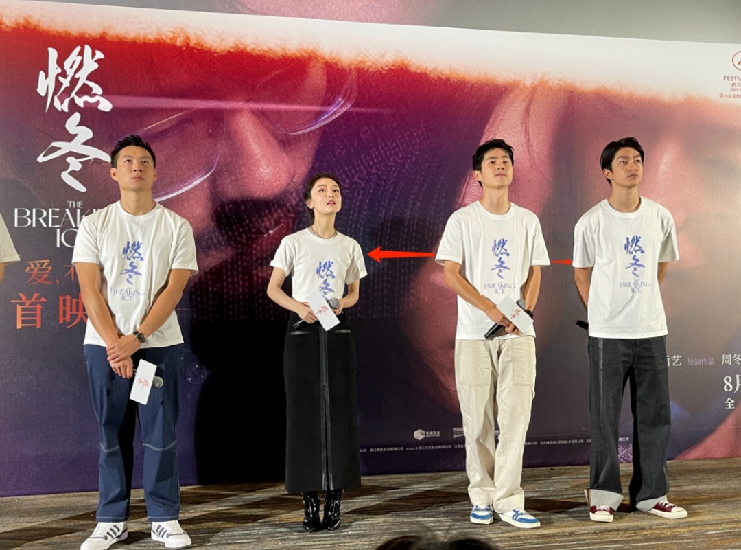 比如,刘昊然与周冬雨站位距离之远,中间还能再站得下一个屈楚萧。