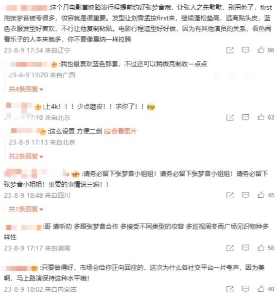 早在本年6月,张梦音在吩咐平台发布周冬雨红毯造型,评论区粉丝就大赞妆造,并但愿两东谈主能锁死。