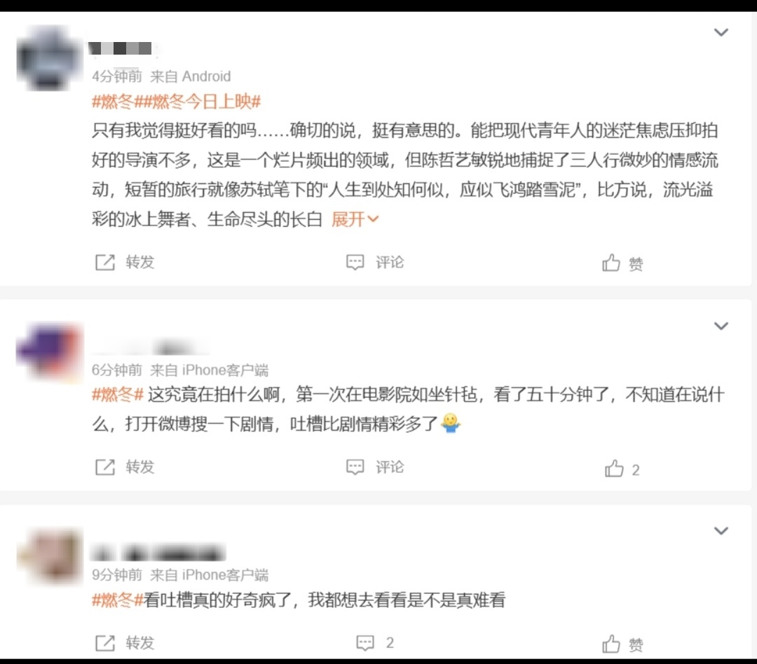 《燃冬》本日慎重上映后,当今的评价则驳斥不一。