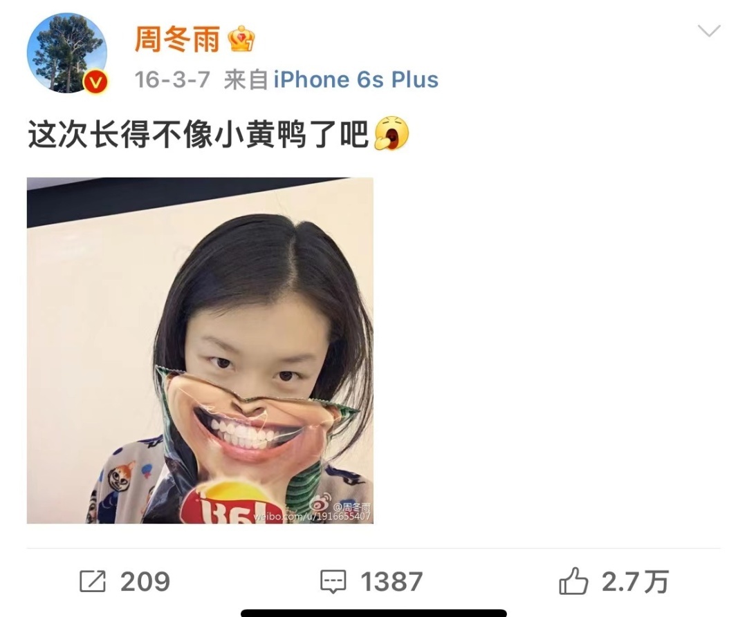 而周冬雨像小黄鸭是一个还是被正主认证的梗↓